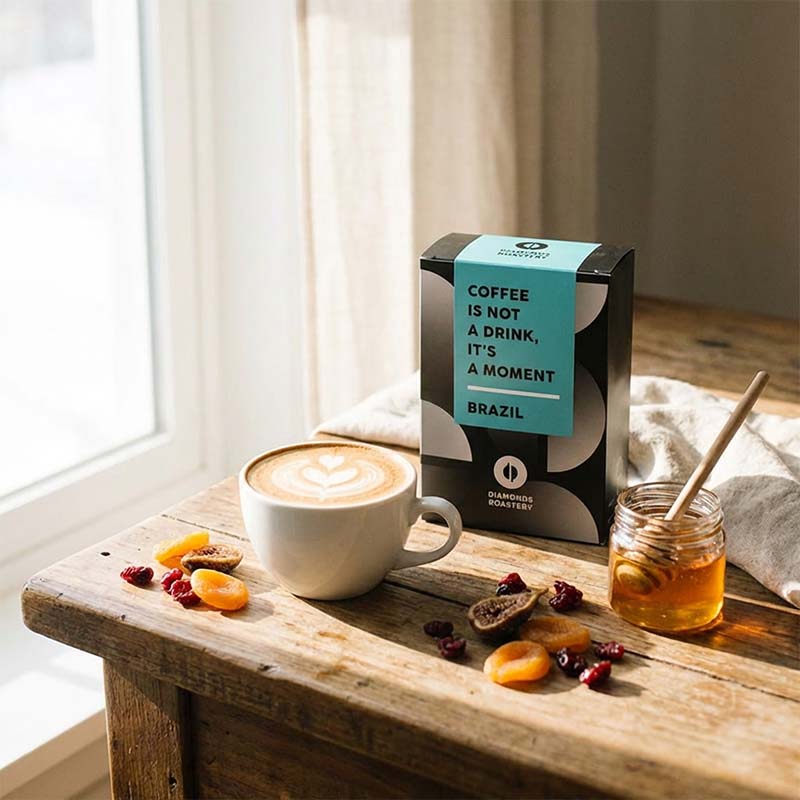 Jsou brazilské kávy, které okouzlí svou hloubkou a sladkostí a Fazenda Tamboril od slovenské rodinné pražírny Diamond's Roastery je přesně taková. V šálku na vás čeká plné, sametové tělo a tóny švestkového džemu, sušeného ovoce, sladkost medu a tmavé čokolády, které drží až do posledního doušku. Skvělá volba do espressa i mléčných nápojů, kde její charakter příjemně vyznívá. Tato káva je navíc pražena tak, že perfektně vynikne i na automatickém kávovaru.