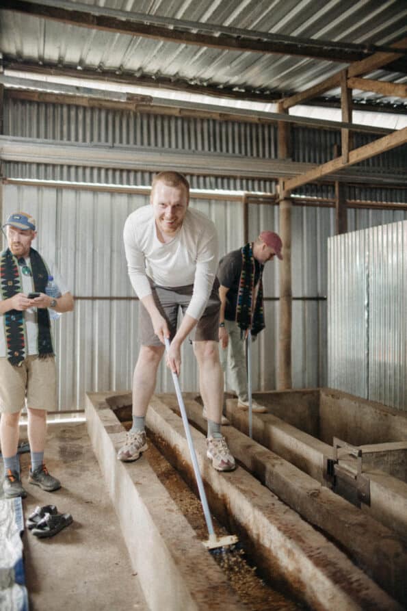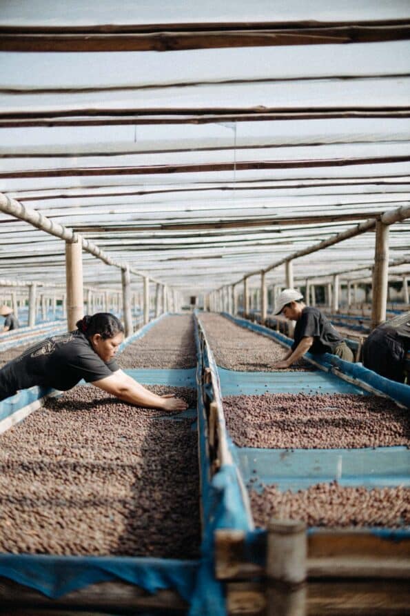 Výjimečný chuťový profil této kávy je dán především precizním a technologicky náročným zpracováním metodou Anaerobic Natural, konkrétně tzv. darkroom fermentation. Celé kávové třešně jsou po pečlivém ručním třídění uzavřeny do nádob s plastovými vložkami, kde fermentují bez přístupu kyslíku v naprostém šeru a kontrolovaném chladu. Tým Andreho Tuanga tento proces bedlivě sleduje a ukončuje jej přesně ve chvíli, kdy pH dosáhne hodnoty 4,5, což je kritický bod pro dosažení maximální čistoty a intenzity aromatických látek. Následuje velmi pomalé sušení na afrických postelích po dobu až 8 týdnů, přičemž zrna jsou každé tři hodiny ručně otáčena.Tato káva je důkazem, že moderní věda a poctivé řemeslo dokážou vytvořit produkt, který v kategorii naturálně zpracovaných káv jen těžko hledá konkurenci.