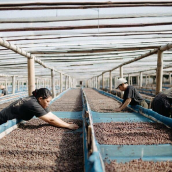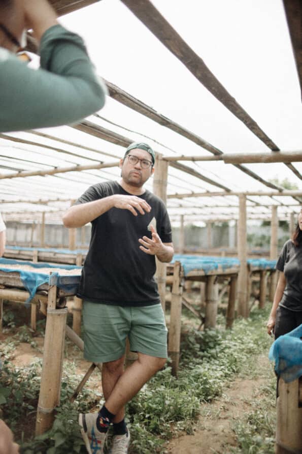 Za touto výjimečnou kávou stojí silný lidský příběh a vize Andreho Tuanga. Ten v roce 2014 opustil svět velkých korporací v Jakartě a vrátil se na svůj rodný ostrov Flores. Dnes jeho organizace Tuang Coffee sdružuje přes 2 500 členů a tento konkrétní lot pochází od skupiny 250 pěstitelů z vesnic Nati, Mbohang a Gulang. Kávovníky odrůd Yellow Caturra, Typica a Kartika zde rostou v úctyhodné výšce 1400–1700 m n. m. v unikátním prostředí polodivokých zahrad. Pěstují se zde v těsném sousedství zázvoru a hřebíčkovců, což kávě dodává její nezaměnitelný terroir. Je to káva s duší, kterou pražiči z Father’s osobně navštívili v květnu 2025, aby vybrali to nejlepší.