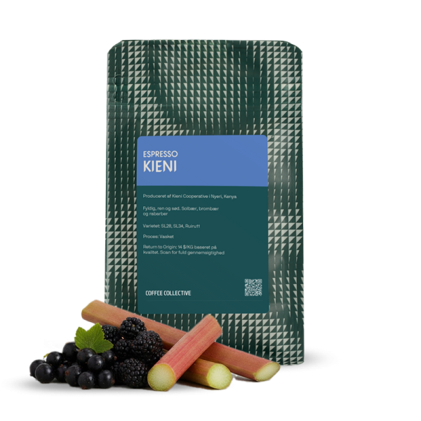 Kávu zpracovává Kieni – kooperativní „factory“ v oblasti Nyeri, kam své třešně vozí zhruba tisíc drobných pěstitelů. Coffee Collective s Kieni spolupracuje už dlouhé roky a právě díky stabilní podpoře patří Kieni mezi nejlépe vyplácející stanice v zemi. Odrůdy SL28 a SL34 (místy doplněné Ruiru 11) rostou ve výškách okolo 1 600–1 800 m n. m. a dávají přesně ten výrazný, „rybízový“ profil, pro který je Nyeri proslulá. Kooperativa spadá pod Mugaga Farmers’ Cooperative Society a leží jen pár kilometrů od města Karatina – v krajině bohaté na červené, sopečné půdy a ideální klima pro pomalé zrání hustých zrn. Výsledkem je surovina, která rok co rok drží špičkovou kvalitu a tvoří základ pro top šarže AA i AB.