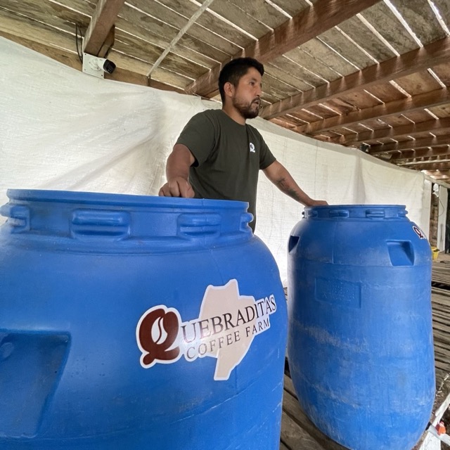 Quebraditas ale není jen o kávě. Edinson a Ángela se snaží zviditelnit celý region Oporapa, který zatím stojí mimo hlavní pozornost kávového světa. Aktivně spolupracují s místními farmáři, vykupují od nich třešně, sdílejí know-how a podporují pěstování kvalitnějších odrůd. Zároveň začali kávy exportovat pod jmény jednotlivých pěstitelů, aby jim dali zasloužené uznání. Jejich cílem do budoucna je nejen další zlepšování kvality a infrastruktury farmy Chorro Alto, ale i posílení celé komunity. Quebraditas je tak ukázkou toho, jak může spojení vášně, inovací a spolupráce proměnit nejen jednu farmu, ale i celý region. Projekt Quebraditas vznikl spojením sil Edinsona Argoteho a Ángely Rojas, kteří se rozhodli budovat něco vlastního v oblasti Huila. Ángela, původně zdravotní sestra, se po letech ve městech během pandemie vrátila domů a společně s Edinsonem se naplno ponořila do světa kávy. Dnes stojí za rodinným projektem, který propojuje dvě farmy Chorro Alto a Quebraditas a zároveň spolupracuje s dalšími pěstiteli v regionu.Farma hospodaří na 18 hektarech v centrální části pohoří Huila. Část produkce tvoří tradiční odrůdy jako Caturra nebo Colombia, druhá část je věnovaná výběrovým a méně obvyklým odrůdám, například Geisha, Sidra, Bourbon Pointu nebo Wush Wush. Do budoucna je jejich vizí zaměřit se právě na tyto výjimečné odrůdy a dál posouvat kvalitu i charakter káv.