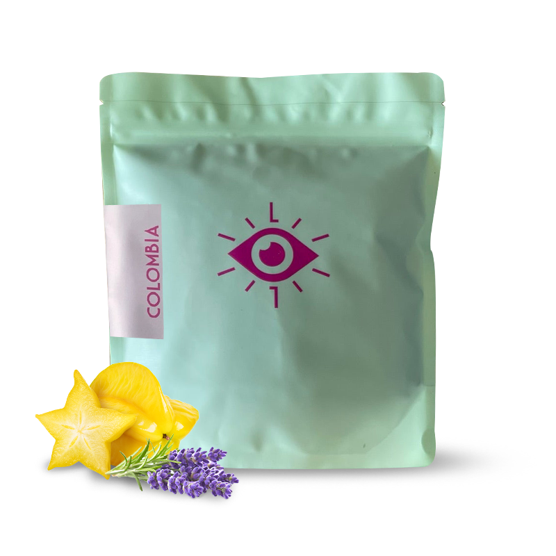 Výběrová káva Kolumbie LAS DELICIAS z pražírny Lucid Coffee Roasters je charakteristická tóny levandule, karamboly, sušených broskví a melasy.