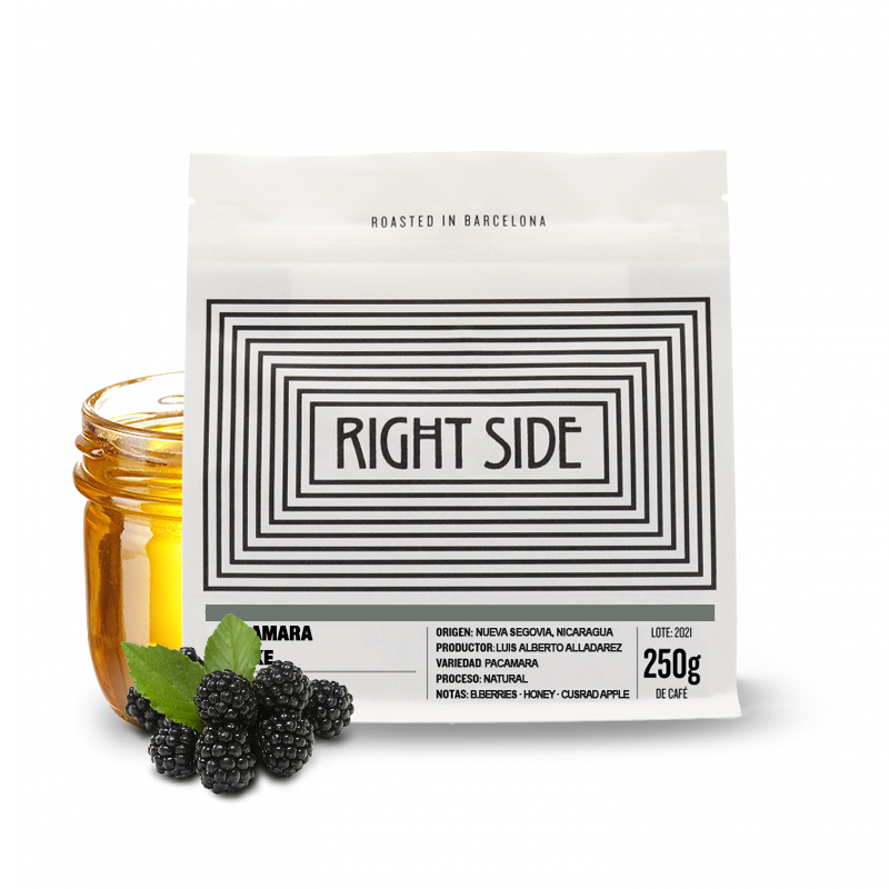 Výběrová káva Nikaragua PACAMARA SHAKE ze španělské pražírny Right Side Coffee je charakteristická tóny ostružin, medu a cukrového jablka.