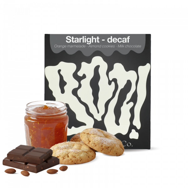 Bezkofeinová metoda Mountain Water Decaf zachovává přirozenou komplexnost zrn bez použití chemikálií. Zrna jsou pečlivě namáčena a filtrována, čímž se odstraní kofein, zatímco se zachovají ovocné, sladké i čokoládové tóny. Výsledkem je šálek, který nepůsobí odlehčeně, ale nabízí plnohodnotný chuťový zážitek. STARLIGHT DECAF je důkazem, že i bez kofeinu lze vytvořit kávu plnou charakteru, harmonie a jemné sladkosti, která potěší každého milovníka kvalitních zrn.