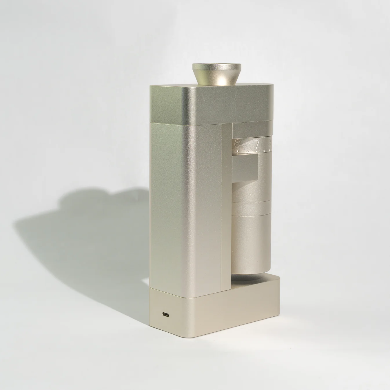 Hrubost se nastavuje přes vnější klikací kolečko s přibližně 300 mikro-kroky, každý o zhruba 8 mikronů. Díky takhle jemnému dělení máte opravdu detailní kontrolu nad mletím a můžete ladit pour-over do posledního gramu vody. Mlýnek je koncipovaný primárně na filtr a pour-over, ale zvládne široký rozsah hrubostí, od jemnějších nastavení až po hrubé cold brew. Uvnitř pracuje pomalý, nízkootáčkový motor (kolem 50–55 ot./min), který zrna zbytečně nezahřívá, takže si káva drží sladkost a aroma.