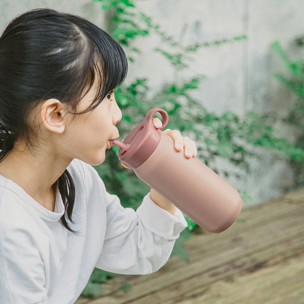 Náustek je navržen tak, aby byl pro děti příjemný na pití. Je kulatý a jemný na dotek, což zajišťuje pohodlí při každém loku. Pro větší pohodlí je možné oddělit brčko a pít přímo, což činí tento tumbler ještě univerzálnějším. Navíc má široké hrdlo, které usnadňuje nejen plnění nápojem a přidávání kostek ledu, a také čištění. Díky praktickému držadlu se tumbler snadno drží a je ideální pro malé ruce.
