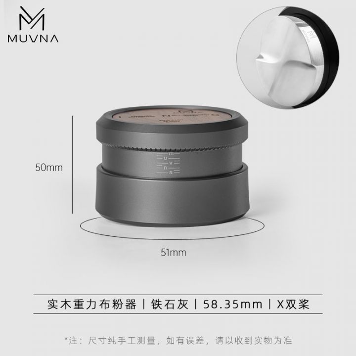 Tento gravitační distributor z masivního ořechového dřeva se vyznačuje elegantním šedým designem s průměrem 58,35 mm, což je ideální pro precizní distribuci mleté kávy ve standardních portafiltrech.