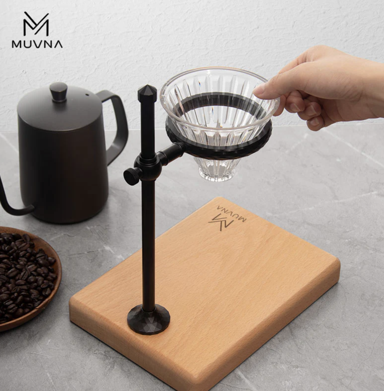 - 1× nerezový stojan MUVNA Coffee Hand Brewer