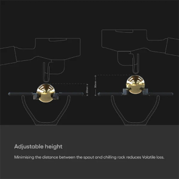 V praxi je Paragon Espresso hlavně o pohodlí a opakovatelnosti. Nastavitelný držák posadíte na hrnek, vložíte do něj zmraženou kuličku a pustíte extrakci – shot přes ni proteče, rychle se ochladí a chuť působí sladší, čistší a často i méně „ostře“ hořká. Samotná kulička je z potravinářské nerezové oceli (SUS304) s titanovým povrchem a uvnitř má kapalné jádro (glycerin + voda), které zlepšuje tepelnou kapacitu a rychlost chlazení. Držák je z práškově lakovaného hliníku se silikonovými protiskluzovými úchyty a systém je voděodolný. Pro nejlepší efekt se doporučuje kuličku mrazit alespoň 4 hodiny, ideálně na −20 až −30 °C.