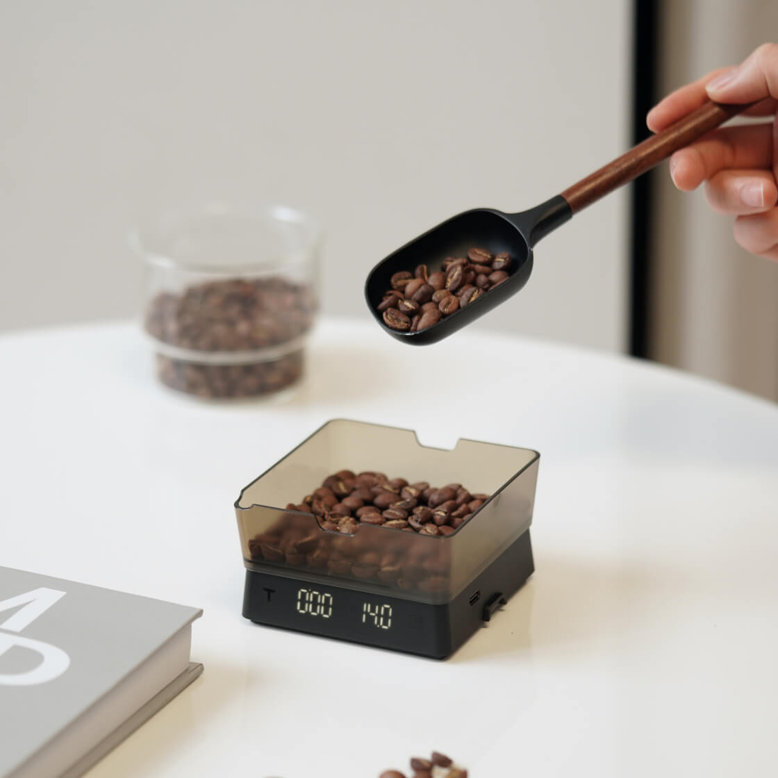 Váha je vybavena jasným LCD displejem pro snadné čtení hodnot a její rychlá odezva umožňuje lepší kontrolu nad parametry vaší přípravy. Součástí balení je také odnímatelný tác, který lze využít jako opěrku pro portafilter, trychtýř pro přesné nasypání kávy do mlýnku nebo jako ochranný kryt při skladování či cestování