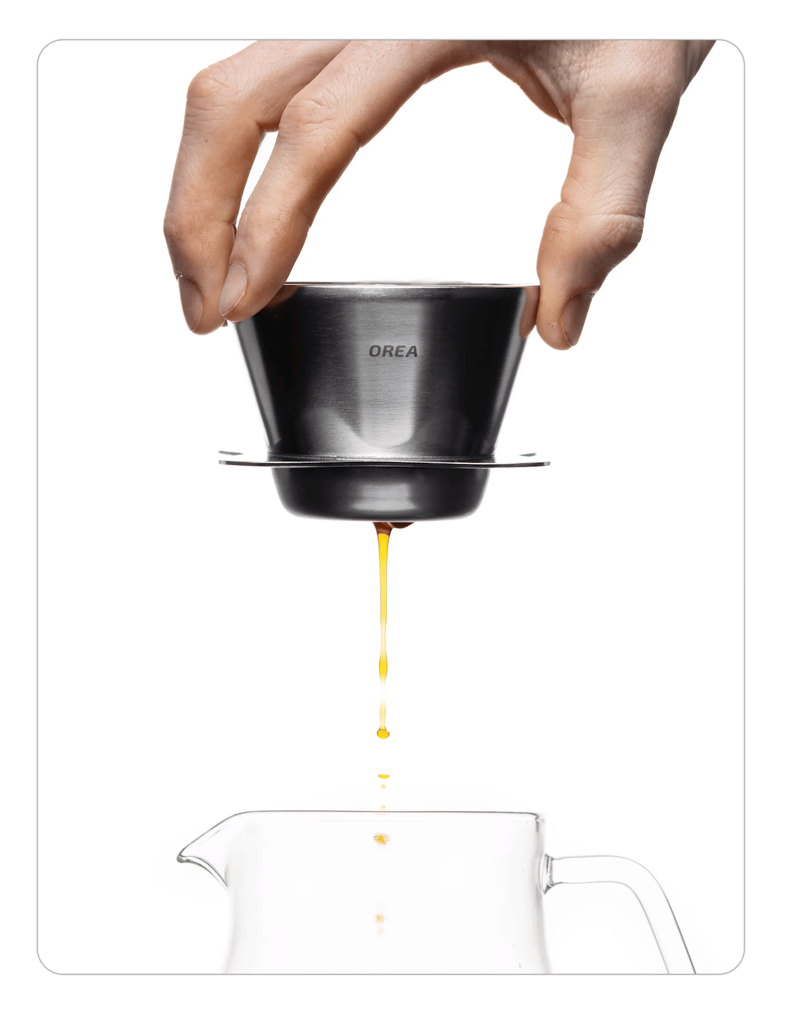 OREA O1 Stainless Steel je luxusní celokovový dripper, který v sobě spojuje ikonický design a nezničitelnost korejské nerezové oceli. Díky unikátní konstrukci s dvojitou stěnou a otevřeným dnem (Open Bottom) udržuje perfektní tepelnou stabilitu, zatímco kávě dodává proslulý „OREA profil“ - jiskrnou aciditu, čistotu a sladké tělo. Je ideální pro přípravu menších porcí (10 - 18 g mleté kávy = 160 - 300 g tekutiny) a díky své odolnosti a kompaktním rozměrům se stane vaším definitivním parťákem na doma i na cesty.