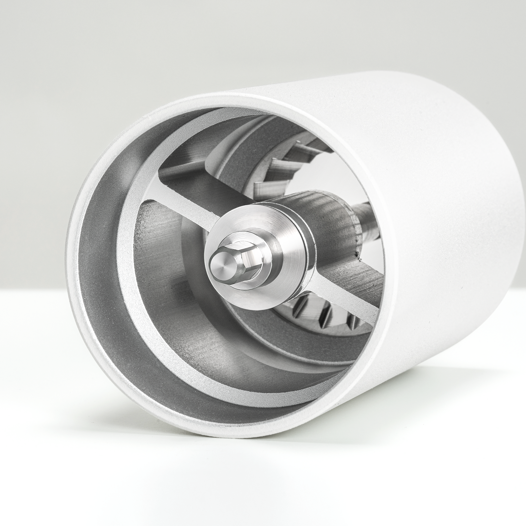 Mlýnek má perfektní velikost a hmotnost jen 530 g, takže se snadno drží a přenáší, ale přesto má slušnou kapacitu 25 g, což stačí na přípravu jednoho nebo dvou šálků při každodenním používání.